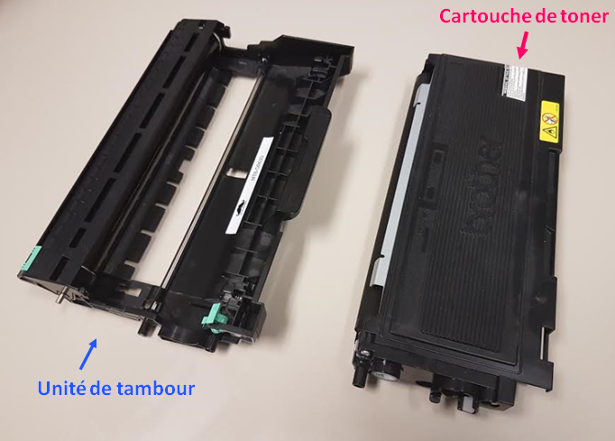 L'unité de tambour est ce qui détient la cartouche de toner dans certaines modèles d'imprimantes tels que Brother, c'est à peu près aussi long qu'un avant-bras. Il transfère le toner sur le papier. L'imprimante laser met le toner sur le rouleau appelé «tambour photosensible» à l'intérieur du tambour, puis imprime des lettres et des images en fixant le toner au papier par la chaleur et la pression.